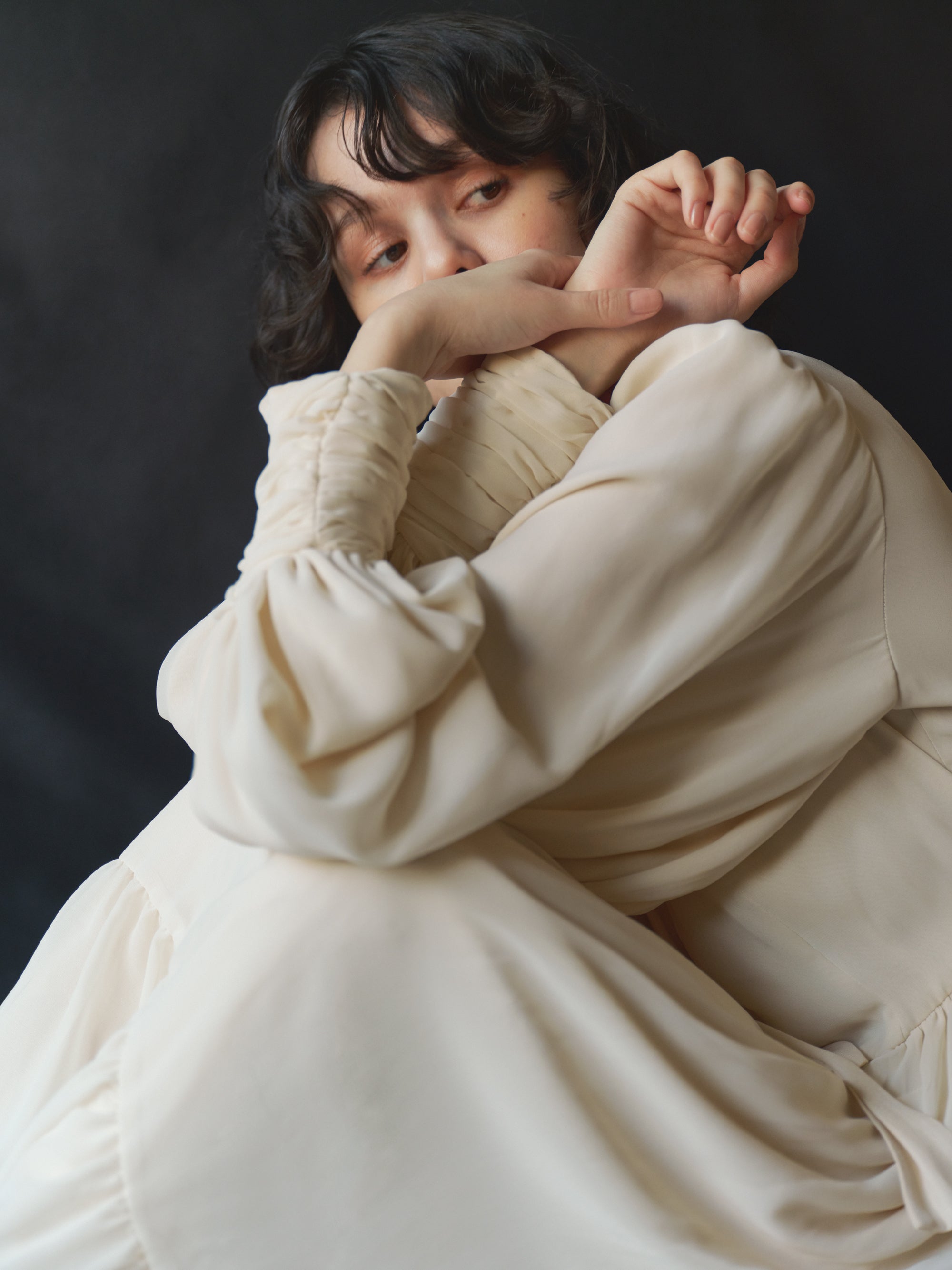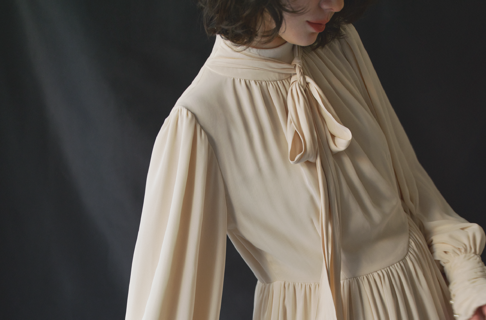 YORYU SATIN SHIRRING DRESS
